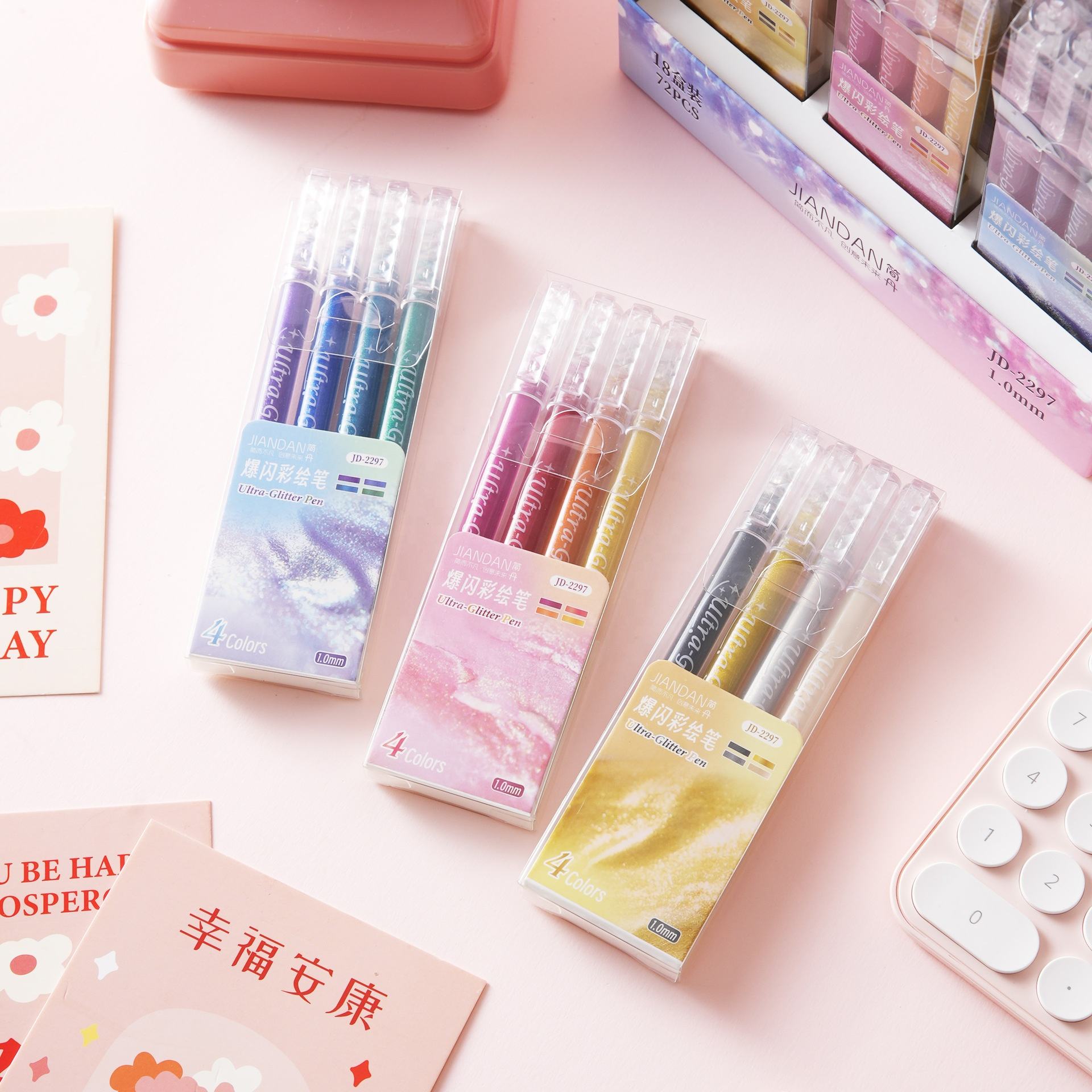 4pcs Glitter Gel Pen Set – 3 Color Themes