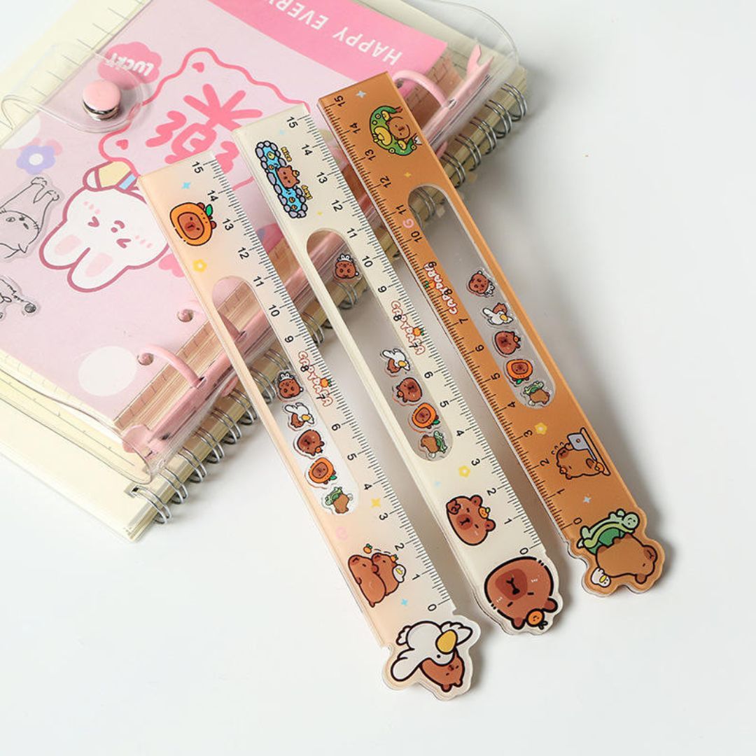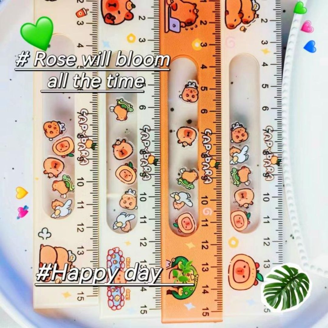 - Transparent ruler with floating capybara face charms inside