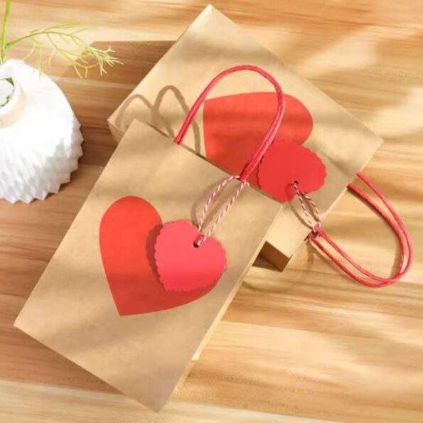 Adorable heart gift bags with tags and twine—perfect for wrapping sweet treats for Valentine’s, weddings, birthdays, and more. Made from premium kraft paper—durable, reusable, and full of charm!