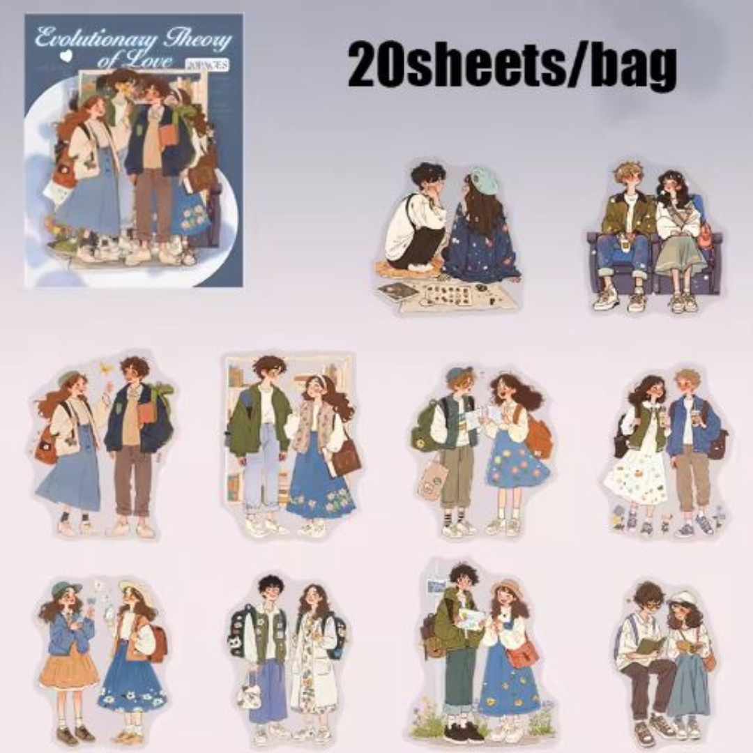 The Couple PET Sticker Pack includes 30 charming pieces, each featuring sweet and romantic couple-themed illustrations. Made from high-quality PET material, the stickers have a clear, durable finish that blends beautifully on journals, scrapbooks, phone cases, laptops, and more. With soft, aesthetic artwork, this pack adds a warm and heartfelt touch to any creative project. Perfect for journaling lovers or anyone who enjoys decorating with cute designs, these 30pcs stickers bring love, charm, and personality to everything you embellish.