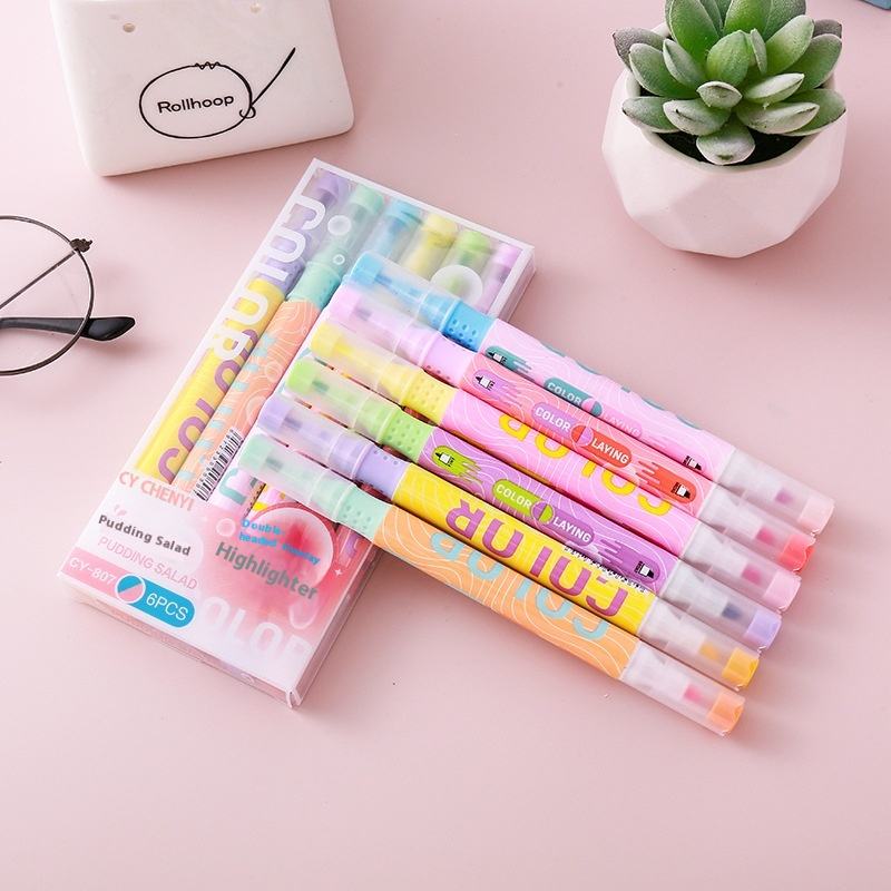 Brighten up your notes with this Dual Head Highlighter Set, featuring two different vibrant colors in one marker! Designed for convenience and creativity, each pen includes dual tips for quick color changes—perfect for studying, journaling, or creative projects. The smooth, quick-drying ink prevents smudging, while the ergonomic design ensures comfortable use. Compact, colorful, and versatile, this set is a must-have for students, artists, and stationery lovers alike!