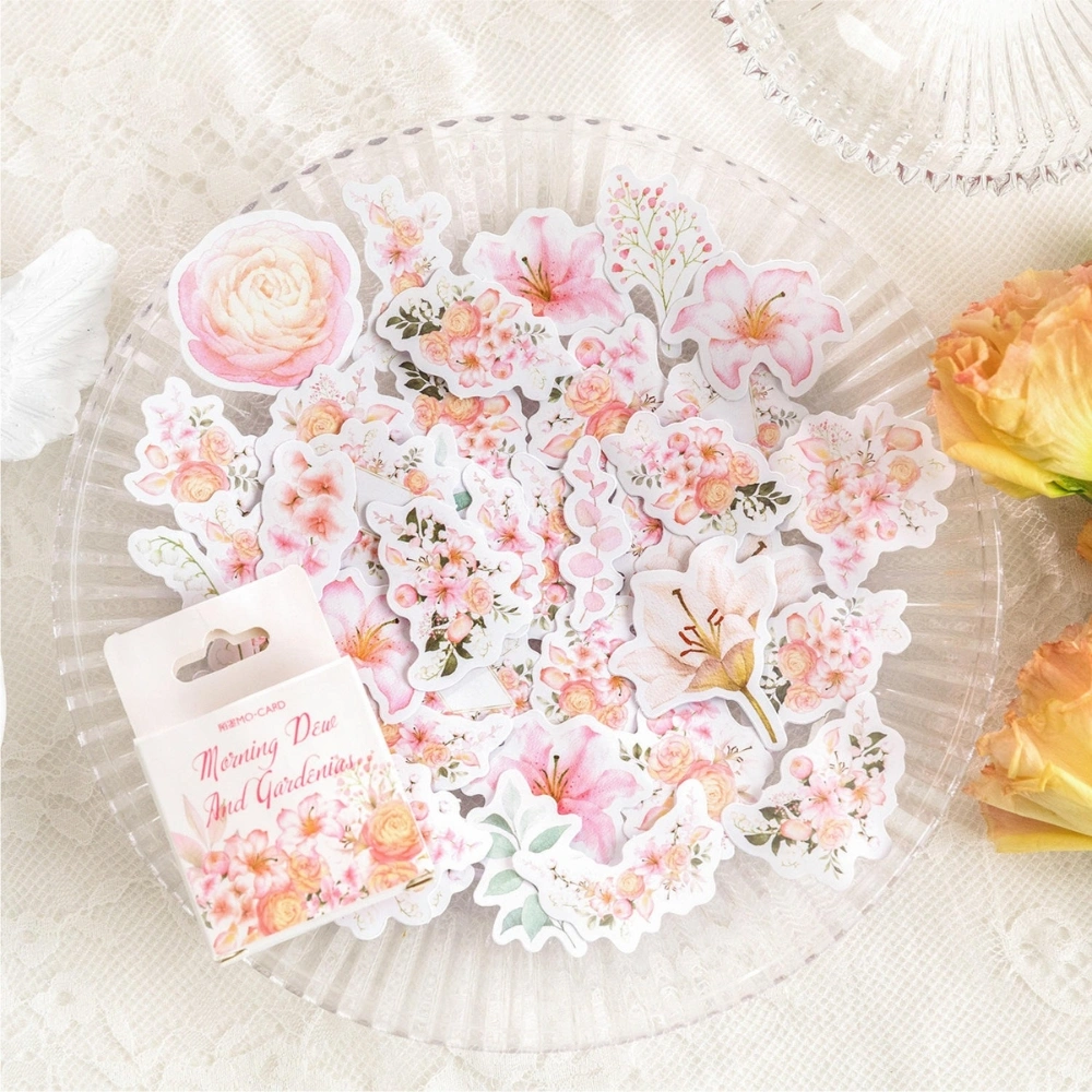 Floral mini boxes contain 40–45 paper stickers each. Made from lightweight paper material, these stickers come neatly packed in a tiny storage box, making them easy to carry and store.