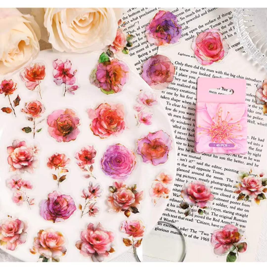 Aesthetic Floral mini boxes containing 40–45 pieces of paper stickers in each box. Made from lightweight paper material, these stickers come neatly packed in a tiny storage box, making them easy to carry and store.