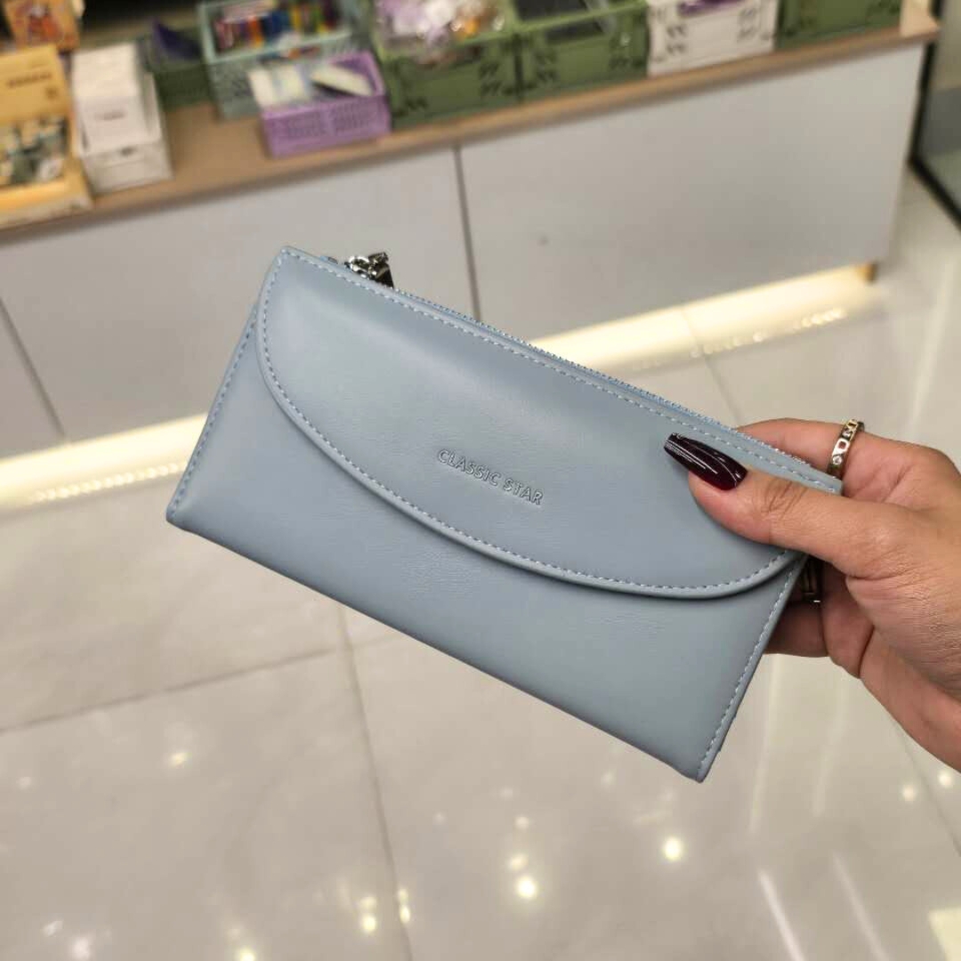 Soft PU Leather Long Wallet with Front Pocket, Chain & Multiple Card Slots – Available in 3 Colors