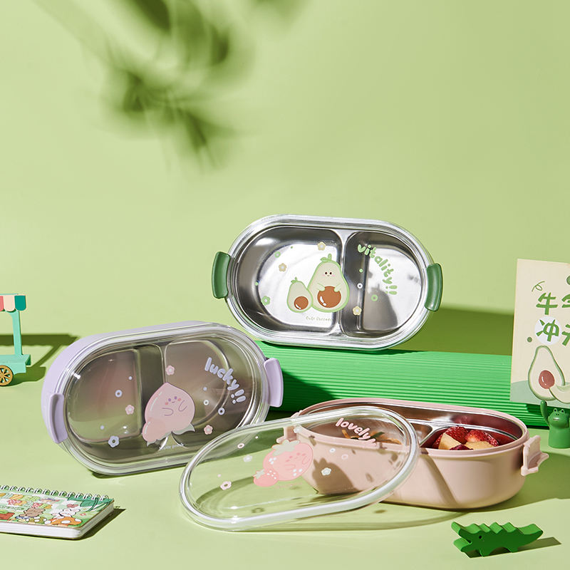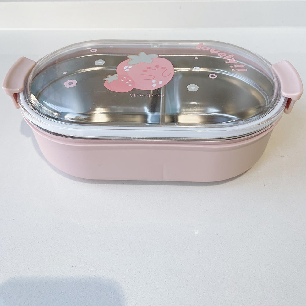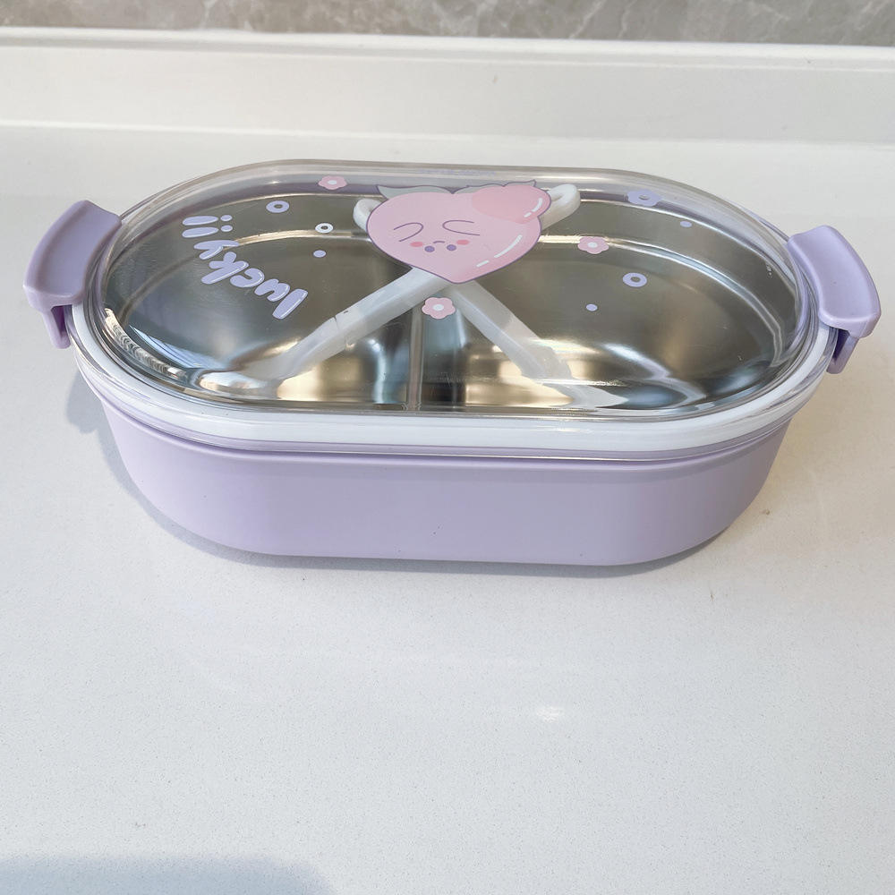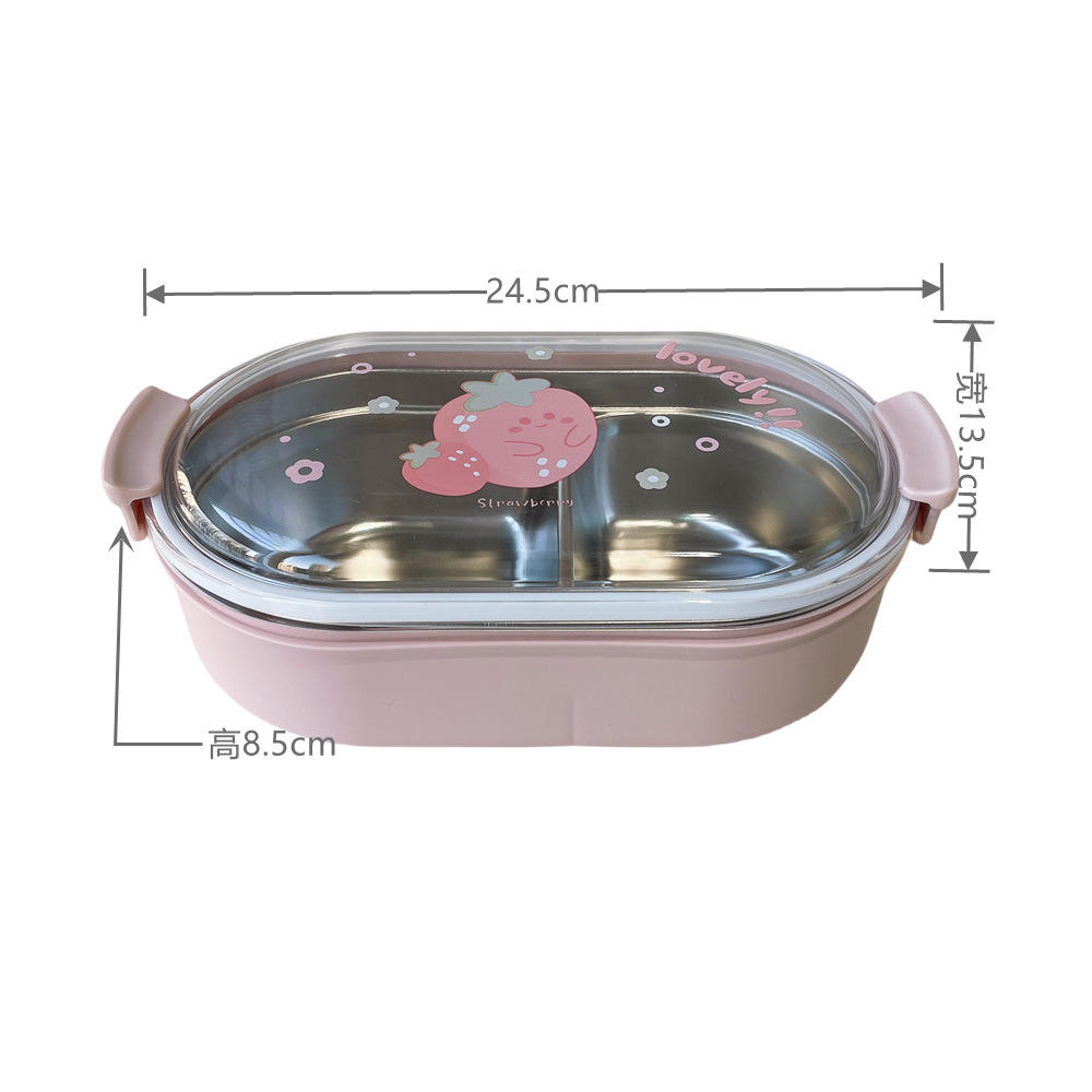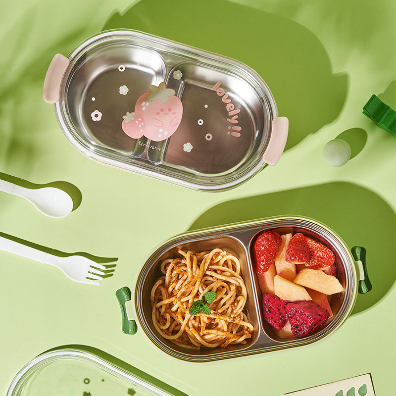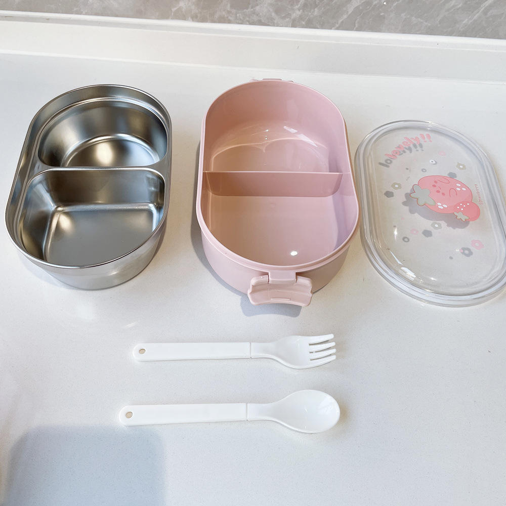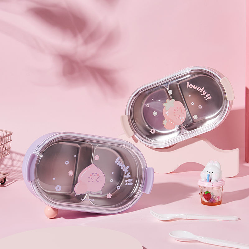 Cute Students 2 Compartment Leakproof Tiffin Food Container Stainless Steel Insulated Thermos Bento Lunch Box for School Kids