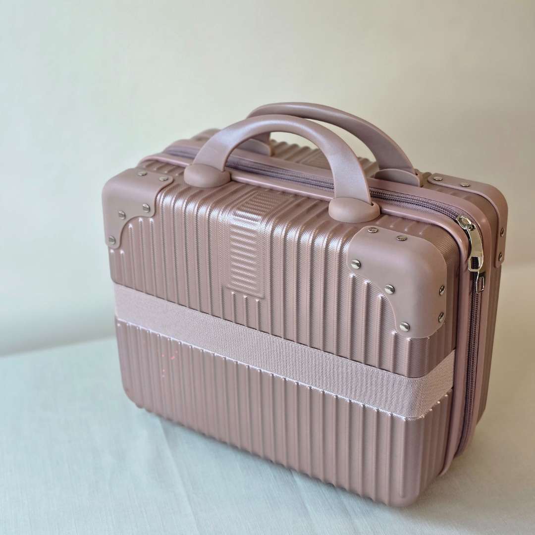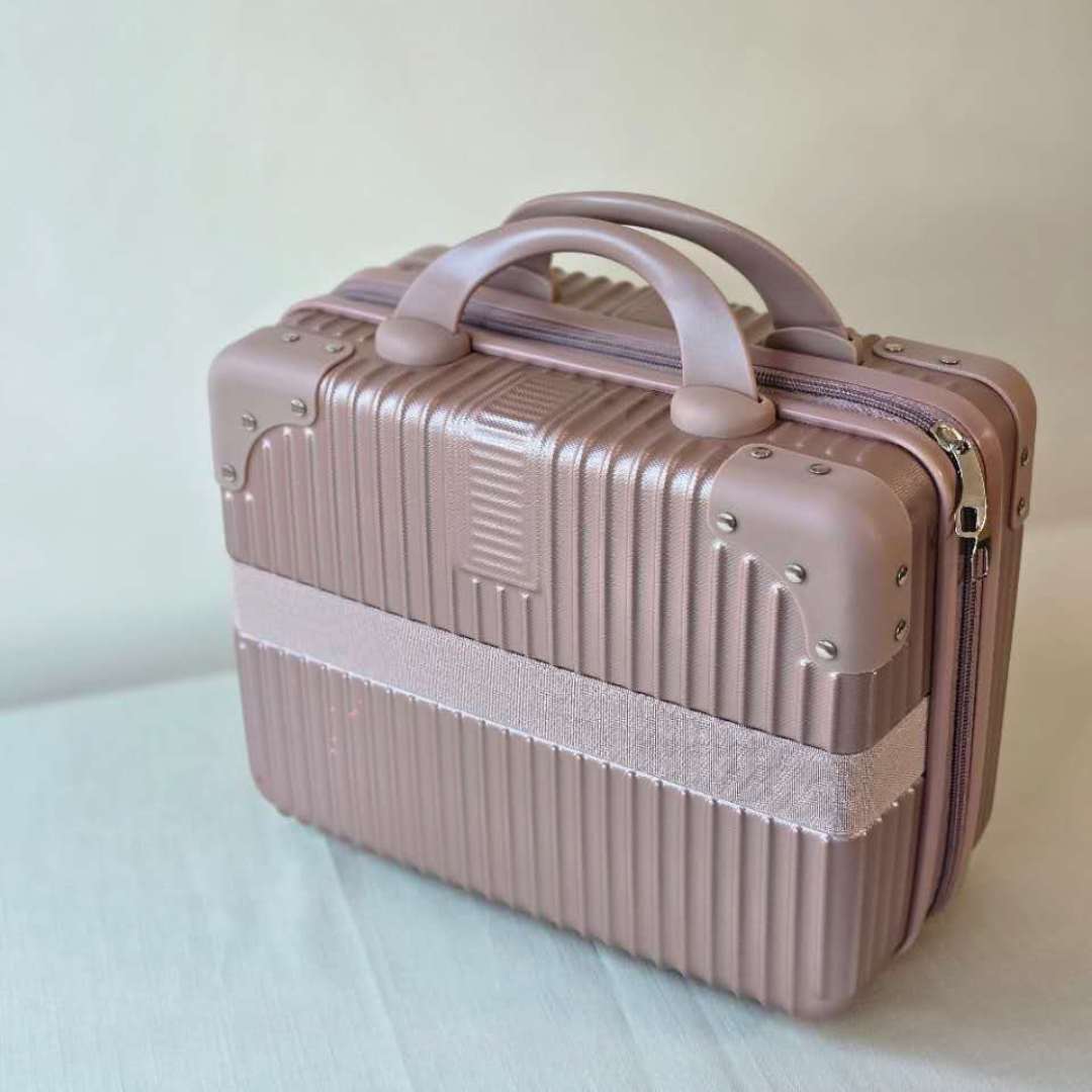 These trendy mini luggage bags feature a convenient back strap that easily attaches to your larger suitcase handle, making them perfect for everyday use or travel.