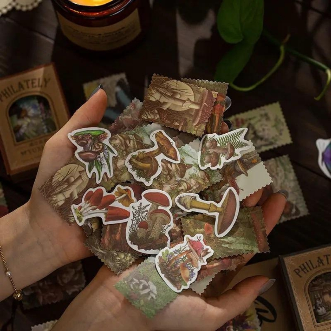 Bring a nostalgic and artistic vibe to your stationery with this vintage-style 58-piece stamp sticker set. Featuring a variety of random classic designs, each sticker gives a unique retro aesthetic that makes your journaling, scrapbooking, and creative projects more stylish and expressive.
